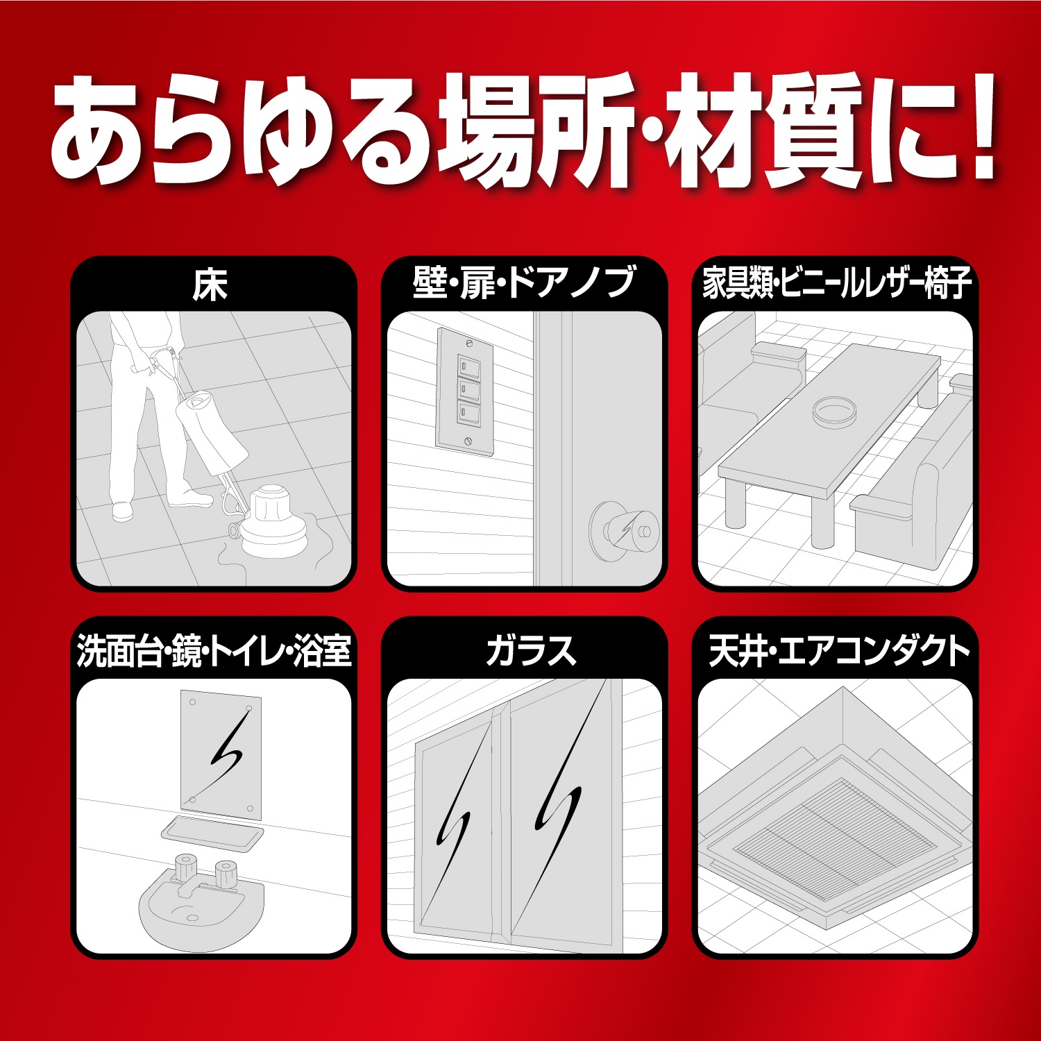 水洗いのできる各種基材の表面洗浄に使用できます 特に床面の表面洗浄に適しています (畳、カーペット、食品、食器、水性塗料面、無垢の木質面、しっくい壁、シャワーノズル及び便座などのABS樹脂成型品の洗浄には使用しないで下さい)
